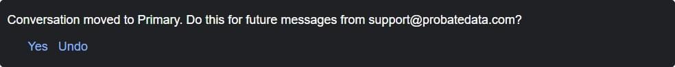 Now you will always see support@probatedata.com in your Primary Inbox tab...
